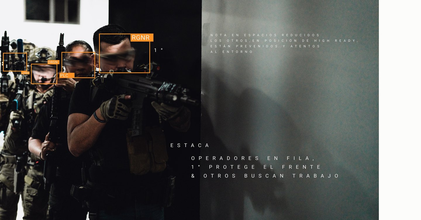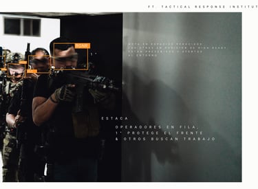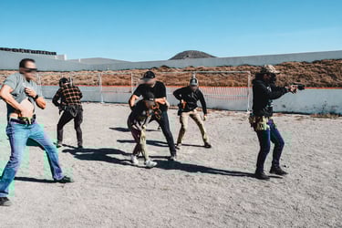 Nuestros entrenamientos incluyen protocolos de seguridad, combate en espacios cerrados (CQB) y atención de heridos en combate, enfocándose en la prevención, la respuesta táctica y la toma de decisiones bajo presión.